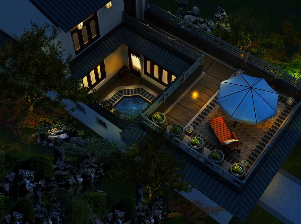 四合院內向開敞、外向封閉、具有嚴謹的空間秩序,建筑整齊方正,青磚灰瓦、玉階雕梁、古香古色。而夜晚的四合院,燈火通明,更烘托出以派溫馨的景象。